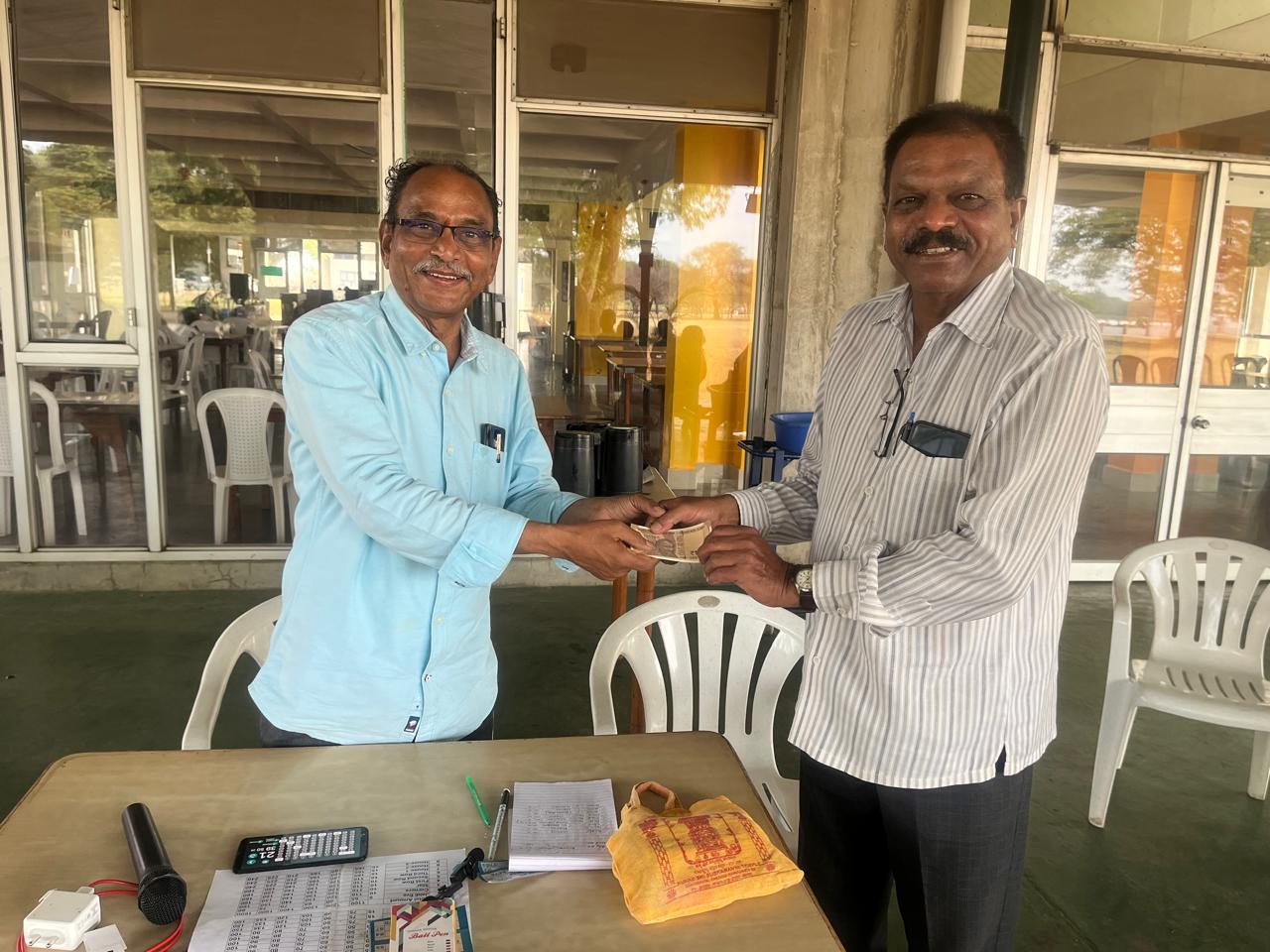 Winners K. Suresh garu & K. K. Sharma Garu (on left) and G. Venkateswar Rao garu (on right) in tambola organized in ICRISAT.